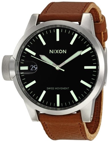 Nixon Chronicle Watch - Men's Black/Saddle, One Size - Nixon Chronicle Mens clock keeps time better than a Julliard graduate. Thanks to the three hand Swiss movement, you will not have to worry about messin about this clock with your rhythm. The date magnifier let us know when to pay the bills, even if you can not find your glasses. And the crown of the great triple-seal ensures that you do not need to grow your nails, just to change the time. The stainless steel case and mineral crystal face are ready to take on doorknobs and walls. Do not worry, you'll be fixing the walls not the clock