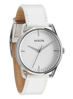 Nixon Mellor Watch Silver/White, One Size - The Nixon Mellor clock throws a killer mix of durability and smooth style. The minimalist design of the large face contrasts with a fashionable leather strap, hardened mineral crystal and is virtually indestructible. So even if you take a bad spill, the clock will be free (even if you donAAAt)