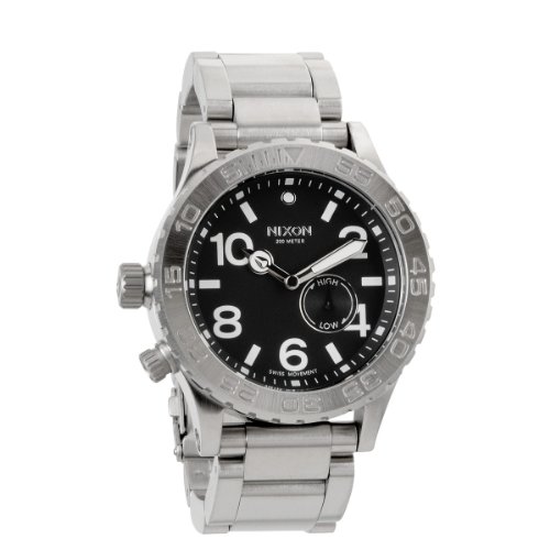Nixon Men's 4220 TIDE Watch A035-000 - The Nixon 42-20 Tide Watch is the slightly smaller version of the massive (and heavily advertised) 51-30 model. Same solid stainless steel case with screw-in crown, same Swiss movement, same heavy, all-business look. Same burly 200-meter water resistance too, plus a 24-hour analog dial flood., Nixon Men's 4220 TIDE Watch A035-000.