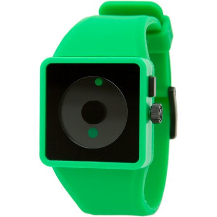 Nixon Men's A116-330 Plastic Analog Green Dial Watch - 2-hand quartz with LED light and display the rotating disk. Custom 30 meter polycarbonate with hardened mineral crystal. 37.75 x 37.75 mm. Own a piece injected silicone with patented locking looper and polycarbonate buckle. 25.50 mm width. Imported., Nixon Men's A116-330 Plastic Analog Green Dial Watch.