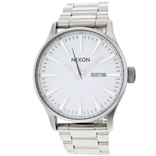 NIXON Men's A356-100 Stainless Steel Analog White Dial Watch - Elegant, sensitivity watches fulfill the timeless elegance of cold hard steel with the Nixon Sentry SS clock. The case of strong resistance from 100 meters to collect water through the bottom of the lagoon pearls AAA enough rows to a chain, the daughter of a wealthy businessman, accompanied with which you play baccarat advertise with this evening. Skeletal hands of the Guardian raised hour indexes and contrasting class radiate just enough to make him understand that it is a good idea