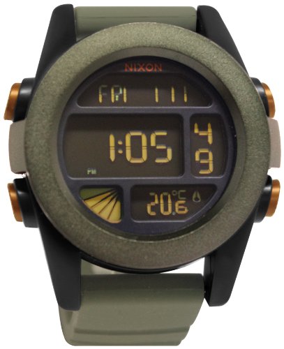 Nixon Unit Watch - Men's Surplus/Black/Orange Ano, One Size - A stealthy agent never leaves his job without the durable unit Clock Nixon MenAAAs. The dual time display with temperature gauge lets him know. The date, time, day and temperatureAAAessential any top secret operation If you must enter a little "light in the door code in the dark, is all you need to do, press the button to illuminate the display. UnitAAAs The countdown timer also allows you to know how much time he still has to dismantle a bomb, and its alarm ensures heAAAs never too late for a meeting with the head of the intelligence service